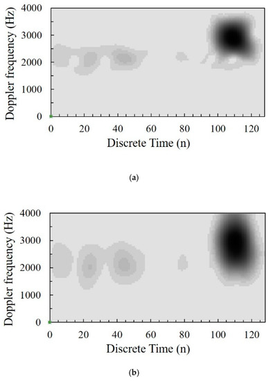 Furthermore, the amplitude of the Doppler signal at each point is ascertained by making the envelope of the Doppler signal using the Hilbert transform as shown in Equation (11). The data at each point are arranged in array form (a) as Equation (12), and these data are selected by time location index (as) as in Equation (13).