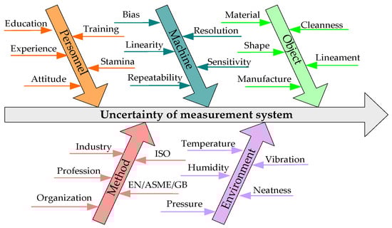 During CMM measurement, all relevant factors may have an impact on the measurement results. The sources of uncertainty in the coordinate measuring system can be divided into five categories according to the analysis method of “personnel, machine, object, method and environment” commonly used in product quality management as shown in