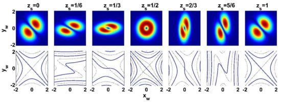 - Zhu, K.C.; Tang, H.Q.; Tang, Y.; Xia, H. Gyrator transform of generalized sine-Gaussian beams and conversion an edge-dislocation into a vortex. Opt. & Laser Technol. 2014, 64, 11–16. [Google Scholar]