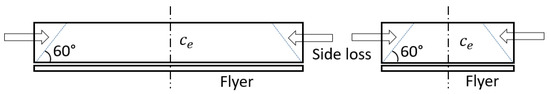 A general velocity profile along the width of the flyer from the previous section was observed. However, it creates another important question about the relation between the velocity profile and the width of the flyer. As addressed before, if the speed of rarefaction intrusion in the gas, or tension wave in the flyer, is a key to understanding the velocity profile [7], then a flyer with more width should be affected, because more width means more distance to travel for the rarefaction or tension wave. This should be an important clue to answer because it may provide a way to advance the conventional Gurney model into a more realistic, two-dimensional approach. Note that the conventional Gurney model assumes that the flyer/charge system is under a one-dimensional configuration, and disregards the effect from the side rarefaction. In order to address this limitation, Baum proposed an approach with effective charge mass () based on the side rarefaction (Figure 1) [3]. A more detailed description will be followed later in this paper.