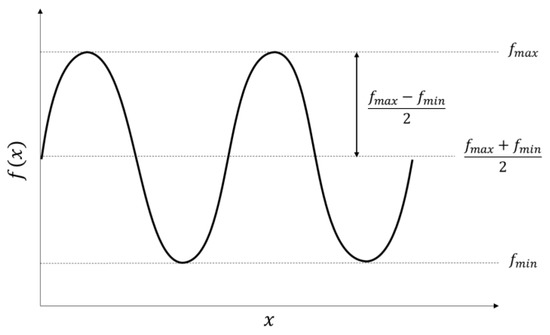 The modulation index () of a periodic signal whose maximum and minimum amplitudes of signal are and , respectively, can be defined as Equation (1) [18,19], where it is the ratio of the average value of this signal () to the size of the amplitude () of the periodic signal .