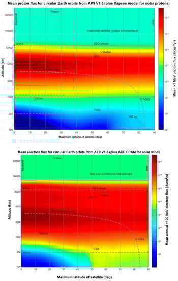 - O’Brien, T.P.; Johnston, W.R.; Huston, S.L.; Roth, C.J.; Guild, T.B.; Su, Y.J.; Quinn, R.A. Changes in AE9/AP9-IRENE Version 1.5. IEEE Trans. Nucl. Sci. 2018, 65, 462–466. [Google Scholar] [CrossRef]