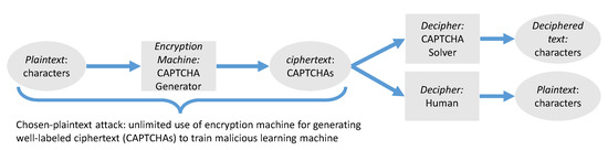 - Kopp, M.; Nikl, M.; Holeña, M. Breaking CAPTCHAs with Convolutional Neural Networks. CEUR Workshop Proc. 2017, 1885, 93–99. [Google Scholar]