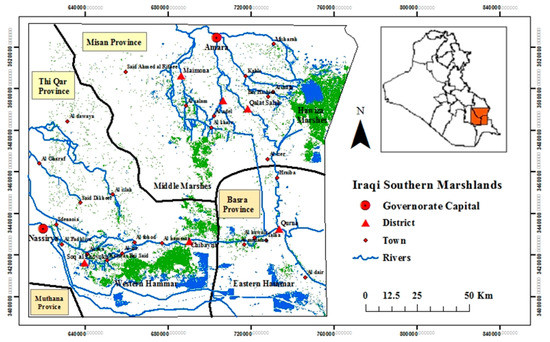 - Canadian-Iraq Marshlands Initiative. Atlas of the Iraqi Marshes; University of Victoria: Victoria, BC, Canada, 2010; p. 72. [Google Scholar]