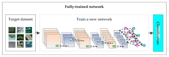 Figure 2. Full-trained network. - Transfer learning: The deep convolutional neural network model based on the large-scale image dataset is applied to remote sensing image scene classification directly or by fine-tuning, as shown in Figure 3.