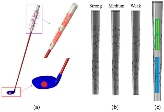 - Tanaka, K.; Sekizawa, K. Construction of a Finite Element Model of Golf Clubs and Influence of Shaft Stiffness on Its Dynamic Behavior. Proceedings 2018, 2, 247. [Google Scholar] [CrossRef]