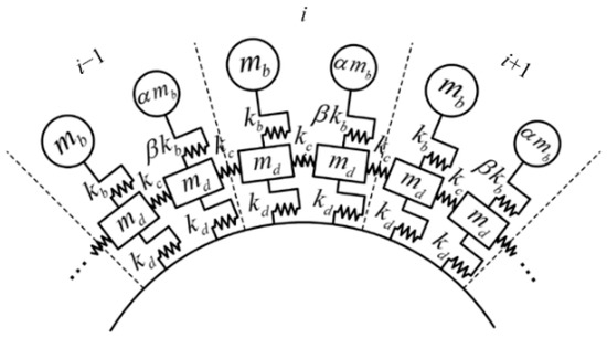 In order to more explicitly reveal the influence of splitter blades on the resonance conditions, a lumped parameter model of the impeller is established as shown in Figure 1. Modal analysis is performed and the undamped equation of motion (EoM) of the i-th sector is given as Equation (1):