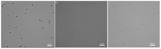 Images of proton tracks on the CR-39 detectors, obtained for a 40× optical microscope magnification: (a) 2 MeV; (b) 3 MeV and (c) 5 MeV proton beam energy.