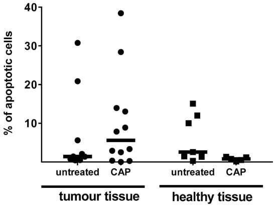 Induction of apoptosis by CAP treatment was superior in tumour tissue compared with healthy mucosal tissue.