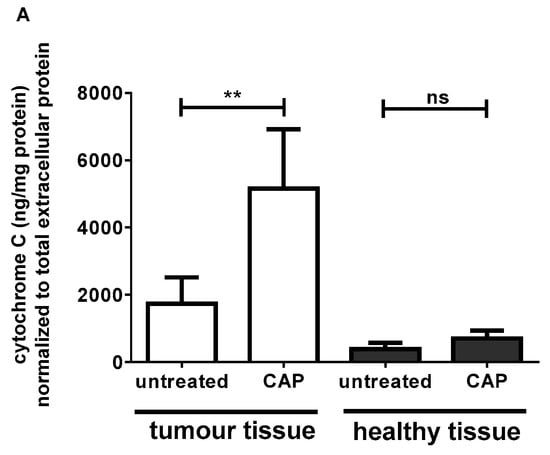 Twenty-four hours after CAP treatment, supernatant of cultured tissue samples were collected and stored at −80 °C until they were subjected to cytochrome c ELISA, according to the manufacturer’s instructions (eBioscience, Affymetrix, ViennaAustria). Concentrations were normalized to total extracellular protein content (Biorad, Heracles, CA, USA).