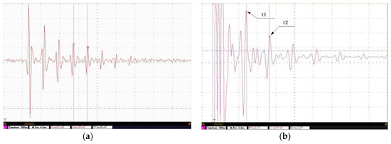 The ultrasonic pulse-echo signal of the CM247LC superalloy sample: (a) Longitudinal; (b) Transverse Wave.