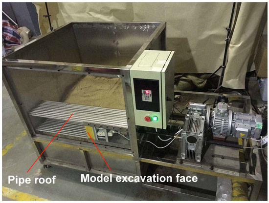 (1) The excavation was set at the initial position, and the pipe roof was fixed; the model sand was sprinkled from a constant height to obtain homogeneous soil stratum; the earth pressure cells were placed during the soil stratum construction; the monitoring system was installed.