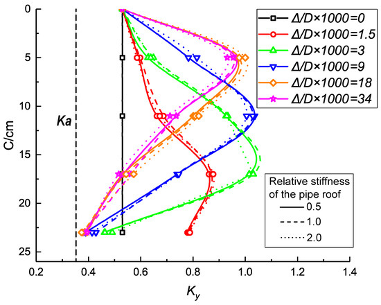 - The change in lateral pressure coefficient in the two directions reflects the formation of the soil arch in the overburden soil of the pipe roof and the pipe roof stiffness does not influence the distribution of the earth pressure coefficients.