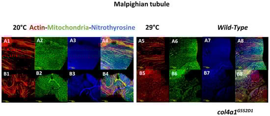 - Kiss, A.A.; Popovics, N.; Boldogkői, Z.; Csiszár, K.; Mink, M. 4-Hydroxy-2-nonenal Alkylated and Peroxynitrite Nitrated Proteins Localize to the Fused Mitochondria in Malpighian Epithelial Cells of Type IV Collagen Drosophila Mutants. BioMed Res. Int. 2018, 2018, 3502401. [Google Scholar] [CrossRef]