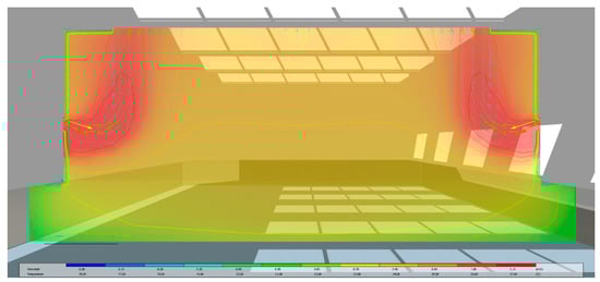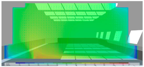 CFD graphic of the applied radiant floor system based on TCP panels. Cross section of the MUA. Indoor air temperatures. 1 February 2015. 9:00 a.m.