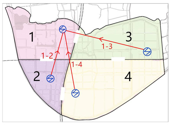 The temperature of a heat transfer medium gradually decreases with the increase of the distance during a transmission process, so the transmission distance of heating loads is limited, and it is generally considered that high efficiency of central heating is attained within 5–8 km [18]. Since each functional area is relatively large, it is not appropriate to establish a heating network between functional areas, but a heating network could be built inside each functional area to achieve the balance of heating loads. The characteristics of heating loads vary in different functional areas. For example, the heating loads of the residential area, the office area, and the commercial area are mostly ordinary heating loads, while the heating loads of the industrial area are mostly productive heating loads.