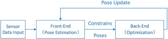 A graph-based SLAM framework could be divided into two parts: Front-end and back-end, as shown in Figure 1 below.