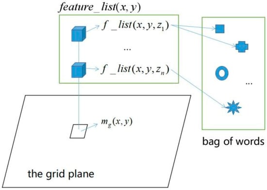 where denotes the vertical height on which there is an image feature located above the grid , and is a list pointing to features in the feature bag. It should be denoted this expression is quite different from traditional methods, as there could be multiple features on a single space point . That seems odd, but necessary in practice. When the camera is moving while SLAM, the image feature of one place is actually changing because of the huge change of visual angles and illuminations. In the history of image processing, researchers have been struggling with such changes and developed various features that are “invariant” to scaling, rotation, transformation and illumination, so that they can track the same place of the object and do more other works. In the expression of the proposed 2.5D map, considering the huge change of visual angles and illuminations while SLAM, the feature in one place may change greatly, as a result, we assume one place could have multiple features.
