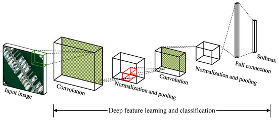 The deep convolution neural network [26] has achieved promising results in the field of natural image scene classification, and it also has many similarities with remote sensing image scene classification. Through the migration of the data set training model, the classification accuracy of the remote sensing image dataset can also be very encouraging. However, there are only three channels of red, green, and blue in natural images, while remote sensing image data with more than three bands have not yet been able to be trained in deep learning training networks, such as ImageNet. This section mainly introduces the pre-trained convolutional neural network model, the unsupervised classification method of scene classification, and fully supervised deep feature networks. The typical classification process is shown in Figure 2. After the input original image passes through the convolution layer, the regularization and pooling layer, the convolution operation, the full connection layer, and a normalization and pooling operation, a classifier is used to get a classification result. The most commonly used classifiers are: the support vector machine (SVM), AdaBoost [27], k-nearest-neighbor [28] (kNN), conditional random field [29] (CRF), sparse representation-based classification [30] (SRC), artificial neural network [31] (ANN), random forest, Markov random field (MRF), and support tensor machine [32] (STM).