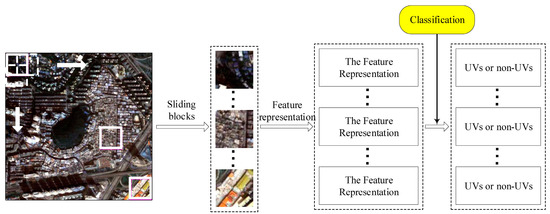 Flowchart of scene-driven object detection: take urban village (UV) detection as an example. The scene trained for deep networks is gained through sliding scenes. By comparing the scene and scenes which have been labeled “UVs”, the training scenes can be labeled UVs or non-UVs, and the object detection result can be achieved.