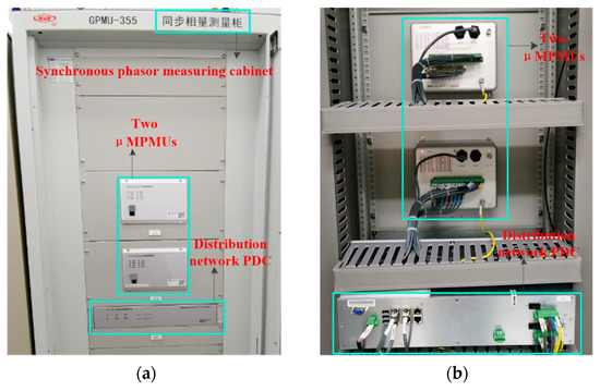 A distribution network PDC and two μMPMUs were deployed at a 35 KV substation in Pudong New Area, Shanghai. Figure 16 shows their installation and wiring. Two μMPMUs monitor different feeders respectively. The data configuration is same as the data unit above, and data such as phasor, analog quantity, switch quantity, and file are transmitted with different priorities. The effect of the on-site operation is positive, and the transmission of phasor data will not be disturbed during the progress of other tasks. The project is still ongoing and will be configured with increasing number of μMPMUs in the future.