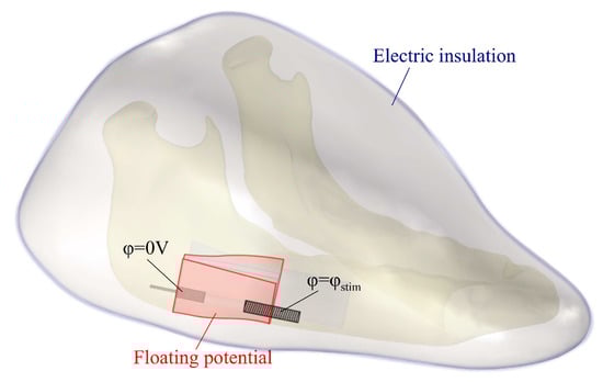 - Raben, H.; Schmidt, C.; Sridhar, K.; Kämmerer, P.W.; van Rienen, U. Numerical Design Studies on a Novel Electrostimulative Osteosynthesis System for the Mandible. Curr. Dir. Biomed. Eng. 2017, 3, 613–617. [Google Scholar] [CrossRef]