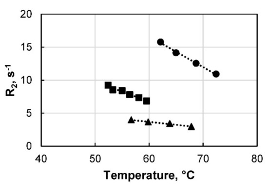 The temperature correction of the measured spin-spin relaxation rate R2 was described by the model: