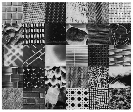 - Picard, R.W.; Kabir, T.; Liu, F. Real-time recognition with the entire Brodatz texture database. In Proceedings of the IEEE Conference on Computer Vision and Pattern Recognition, New York, NY, USA, 15–17 June 1993; pp. 638–639. [Google Scholar]