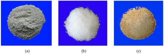 The cement used was Type P.O 42.5 R Portland cement, produced by Guangdong Tapai Cement Co., Ltd. (Figure 1a). The chemical composition is listed in Table 1. Polyvinyl alcohol (PVA-124 AR) from Xilong-Chem was used. The molecular weight (Mw) was 105,000, and the degree of hydrolysis was 97% (Figure 1b). The physicochemical characteristics of this polyvinyl alcohol are given in Table 2. The fine aggregate was China ISO standard sand with the execution criterion of GSB08-1337-2001, from Xiamen ISO Standard Sand Co., Ltd. (Figure 1c). The chemical composition and particle size of standard sand are listed in Table 3. The defoaming agent was produced by Guangdong Defeng Chemical Industry Co., Ltd.