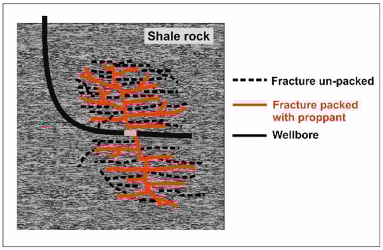 Hydraulic fracturing is one of the main methods for stimulating unconventional hydrocarbon reservoirs. In the case of shale formations, which are characterized by increased content of clay minerals, for intensification treatments to be effective, numerous fractures and cracks should be created [1,2,3,4,5,6,7], as shown in Figure 1 [2,8,9,10].