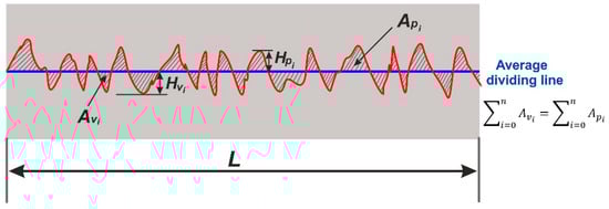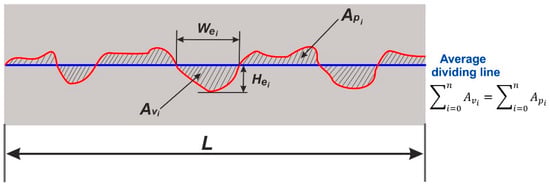 where R is the roughness of the profile surface along the measurement section (mm), Hp is the peak height (mm), Hv is the valley depth (mm), np is the total number of peaks (-), nv is the total number of valleys (-).