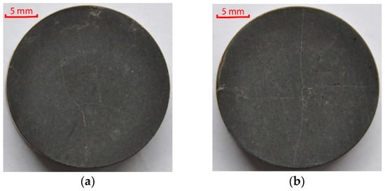 Laboratory simulation of the embedment phenomenon consisted of placing a proppant between two cylindrical core plugs and then exposing it to the set axial compression stress, at the set temperature, for the set period of time (Figure 6a,b) [7,10,21,22].
