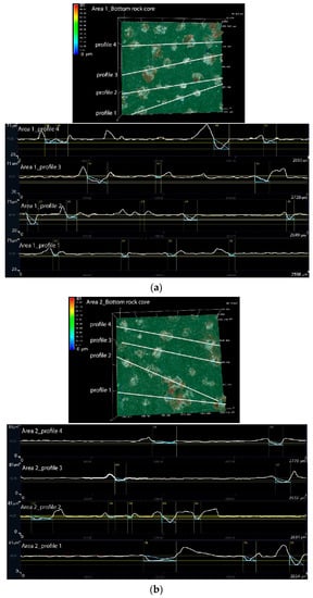 Determination of the primary roughness of the core plug face (fracture faces): (a) Top; (b) Bottom.