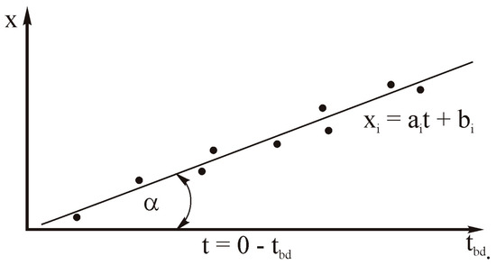 Based on the measurements of the variables above xi (t0) (where t0 = 0 − tbd), trends in variable changes were shown in the period of concern by determining the values of coefficients in the linear model (estimated with the least squares method) xi = ait + bi (Figure 3).