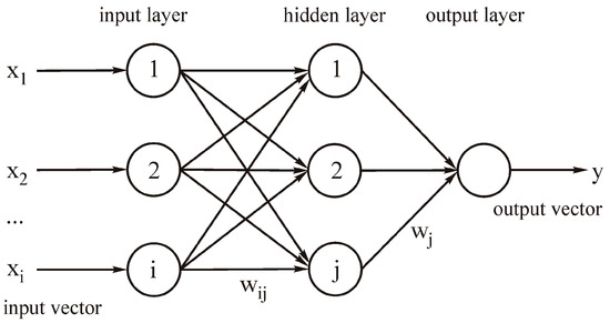 where I—number of model inputs, J—number of neurons in the hidden layer, wij—the values of weights between inputs and neurons in the hidden layer, bj—loads of neurons in the hidden layer, wj—the values of weights between neurons in the hidden layer and the neuron in the output layer and f—the activation function.