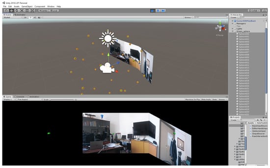 The first step was to generate and save the 360 degree spherical image within HoloLens internal storage. This image was created with the above mentioned pre-set scene (Figure 3). Moreover, it is important to notice that this step can be repeated: any time the user wants, he can return to the pre-set scene and create a new spheremap with a new set of photos. This feature makes our method suitable for highly portable and real-time applications.