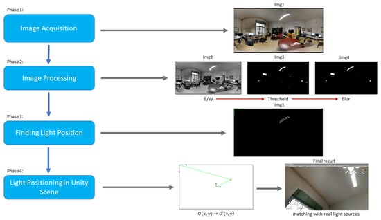 The project starts from the acquisition of the original image through the filtering stages until the positioning of lights in the Unity scene and it finishes in a comparison with the reality matching the results.