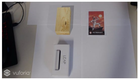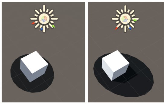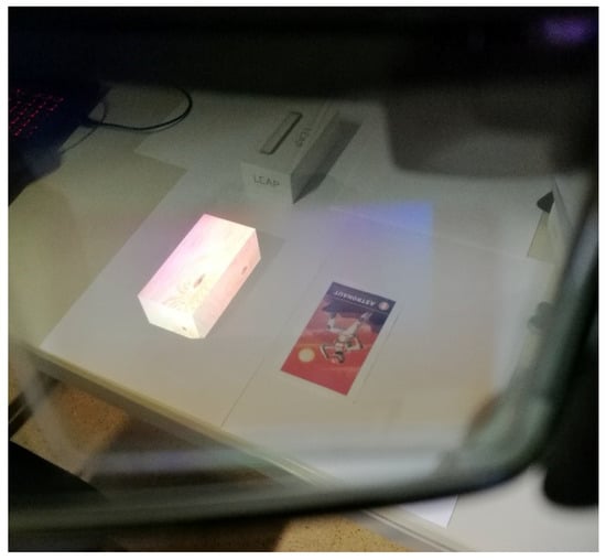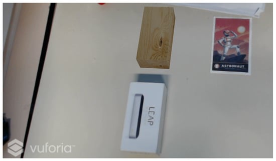 The integration of OpenCV and Unity achieved the first result: the perfect match between real shadows and virtual shadows (Figure 21 and Figure 22). The wooden box is the augmented object, while the Leap Motion box is the real object.