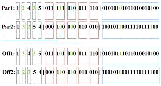 In MTTP, the end effector is constrained to visit a set of predefined waypoints, and each waypoint is limited to being visited once. According to binary encoding, the random selection of the crossover and mutation mechanisms may lead to alphabet repetition, thus conflicting with the requirement of only visiting each waypoint once. Integer encoding is the best choice, where N positive integers correspond with N waypoints.