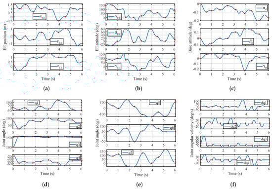 In Equation (8), , and are employed to depict the base attitude of FFSR2, denoting the Euler angles around the X-, Y-, and Z-axis of , respectively. The order of rotation around the axes is .