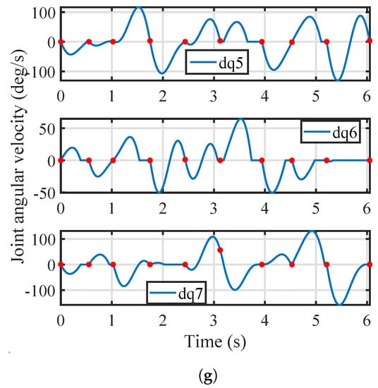 In Equation (13), . Moreover, joint angular velocities are limited to be zero at each waypoint, given by:
