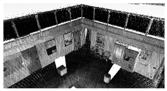 There would be an obvious quality measure of the resulting point cloud by comparing the points of the redundant measurements, e.g., by averaging the distance to their nearest redundant neighbour. However, since there is no correspondence between the single points of the different clouds defined, it is not possible to measure their distance or something like that. As the experiments are done in an artificial environment, there are many planar surfaces in the scene. How crisp or sharp a point cloud is can therefore be measured in a more semantic way. The effect on planar surfaces, like walls, were already shown in Figure 1 and thus the point cloud quality corresponds with how noisily those planar regions have been sampled.
