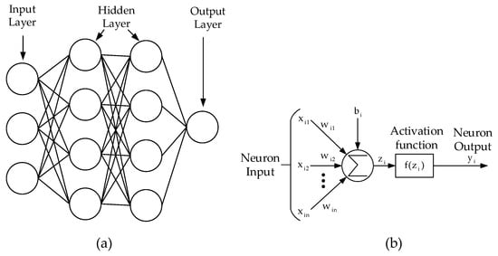 (a) A regression neural network and (b) the processing role of each neuron. (Adapted from []).