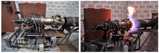 Views of the iSTC-21v turbojet engine (left) and its starting process (right) in a laboratory.