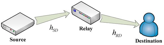 Here, we use the amplify-and-forward (AF) protocol for our model. Then, the received signal at R is amplified by a factor β, which is given by Equation (6)