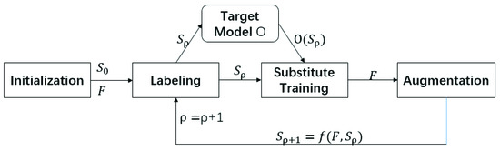 After the augmentation, we continue to label the new dataset like we proceeded with before, and train the substitute model F with . Here, we called ρ subtitute training epoch, denoted as epoch ρ. In addition, the method we present above is just a complete epoch, which we may repeat several times to finally get our substitute models. By the way, the number of substitute training epochs is mainly determined by the constraint of query times.