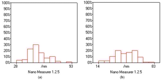 After obtaining SEM images with different magnifications, the distribution of particle size of nanosilica and NHSS was statistically analyzed using Nano Measurer 1.2 software. The statistical results are shown in Figure 5.