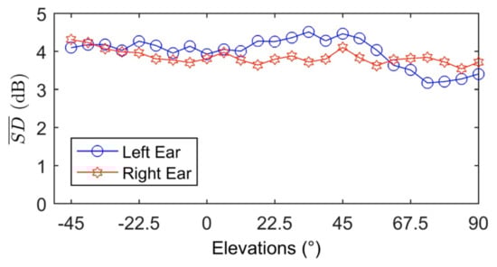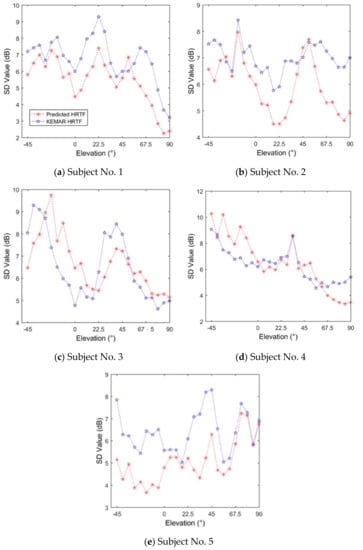 Spectral distortion (SD) is used to evaluate the deviation between the original and reconstructed HRTFs. For a specific subject, SD is defined as [