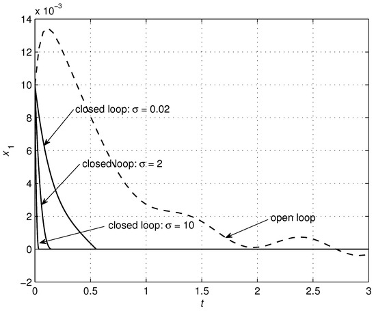 - Skruch, P. Feedback stabilization of a class of nonlinear second-order systems. Nonlinear Dyn. 2010, 59, 681–692. [Google Scholar] [CrossRef]