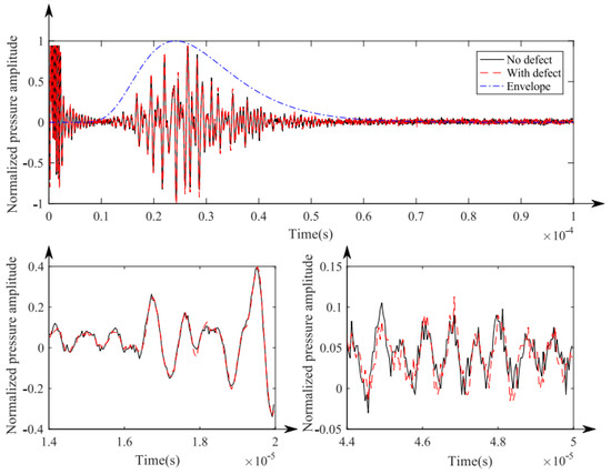 According to Equation (3), the correlation and decorrelation coefficients can be determined from the waveforms with and without a defect. The stretching method demonstrates great stability to external noise and is applied here [16]. The decorrelation coefficients can be calculated according to Equation (8):